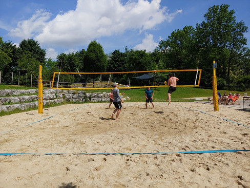 Je näher wir Richtung Schleißheim kamen, desto schöner wurde das Wetter, auch die Vorfreude stieg immer weiter. Die Flying Flip Flops haben eine wirklich traumhafte Beachvolleyballanlage mit gleich zwei Plätzen nebeneinander, daher konnten wir immer zwei Spiele gleichzeitig abhalten.
